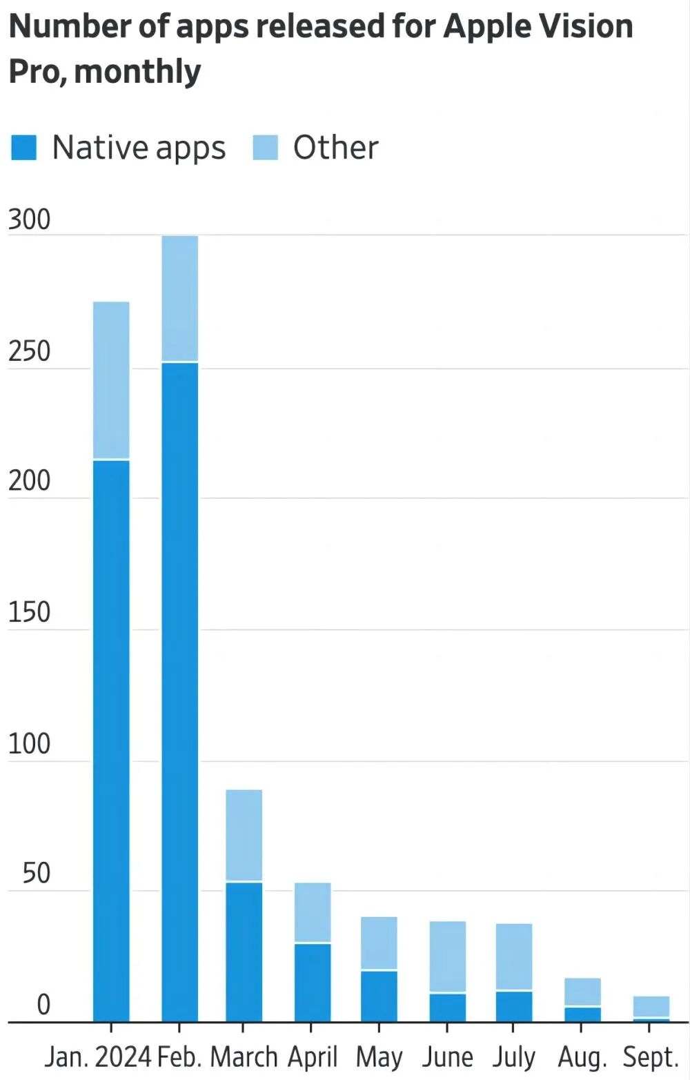 从应用来看,自Vision Pro发布后,新增应用的速度非常缓慢,到后来几乎不见多少新应用。根据美国分析公司Appfigures的数据,Vision App Store在2024年9月份仅增加了10款新应用,远低于设备发布后的两个月内引入的数百款应用。同样地,在内容上,当初苹果官方主推“沉浸式内容”这个卖点,但现在新内容推出的速度却大大放缓。