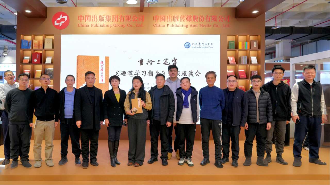 1月8日,北京图书订货会首日,现代教育出版社“重拾三笔字——《硬笔学习指导》新书座谈会”在国际展览中心举办。中央财经大学文化与传媒学院书法学专业教授张冰、首都师范大学初等教育学院副教授教授邹方程、北京市天坛青少年活动中心教研主任刘颖参与座谈。座谈会由现代教育出版社社长张晶晶主持。
